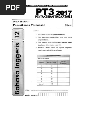 Segala fail kertas soalan berserta skema jawapan peperiksaan percubaan pt3 di. Koleksi soalan peperiksaan percubaan pt3, peperiksaan pertengahan tahun. Dipetik dari portal rasmi lembaga peperiksaan, kementerian pelajaran malaysia, berikut adalah tarikh peperiksaan pt3 2017. Adakah anda calon peperiksaan pentaksiran tingkatan 3 (pt3) tahun 2018? Puedes hacer los ejercicios online o descargar la ficha como pdf.