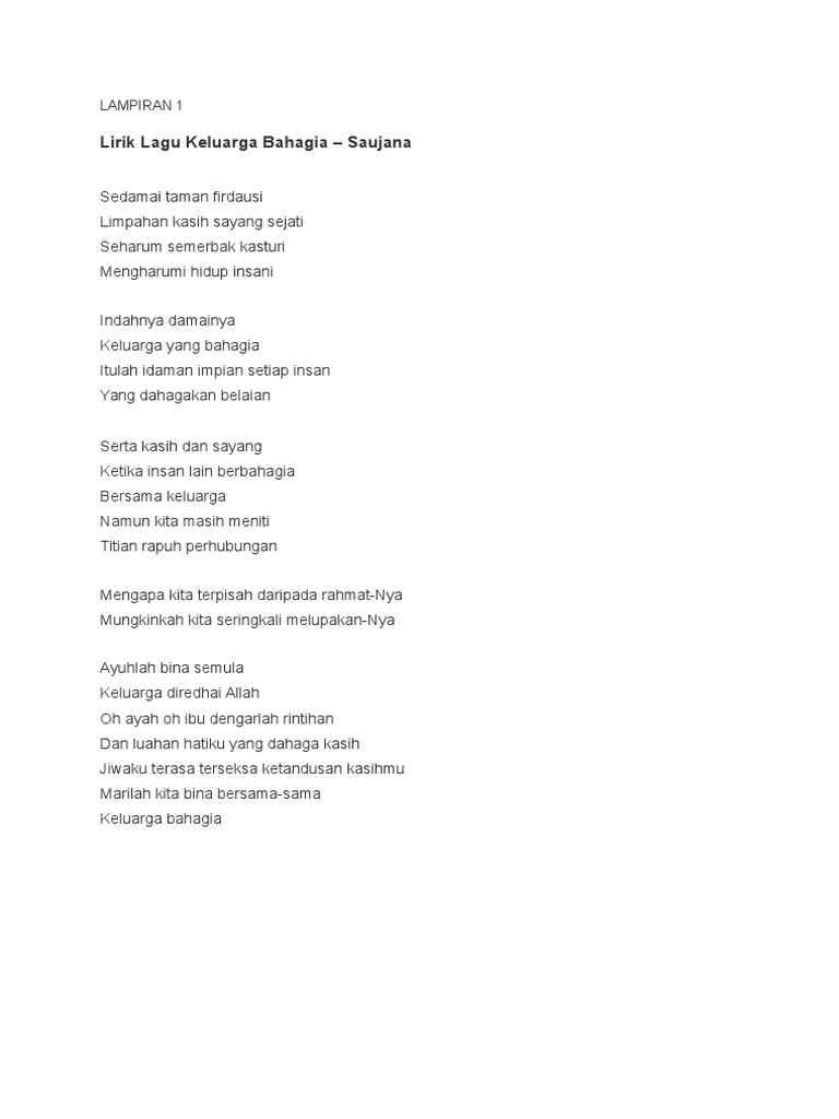 Lirik Lagu from www.nel.moe.edu.sg Savesave lirik lagu keluarga bahagia for later. Berikut adalah deretan lirik lagu rohani kristiani agama kristen tentang keluarga di rumah yang populer, paling banyak dinyanyikan dan merupakan rangkuman dari banyak sumber yang ditemui di internet. List download lagu mp3 lagu keluarga bahagia (4:19 min), last update apr 2021. Keluarga bahagia terbaru gratis dan mudah dinikmati. Keluarga bahagia lagu mp3 download from lagump3downloads.com. Are you see now top 10 keluarga bahagia results on the web. Aku berdiri sendiri mensyukuri yang ku miliki tempatku yang paling indah awal mula semua bahagia tak. Percayalah kawan esok kan berbeda pasti kan engkau mencoba.